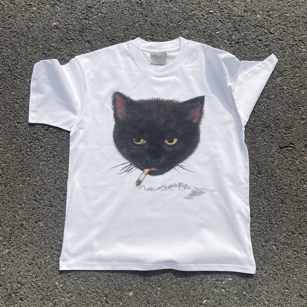 王有病工作室 220G 透气正肩版 !霸气黑猫学生宽松情侣短袖T恤