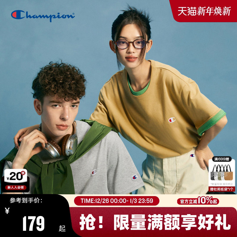 Champion冠军情侣短袖t恤男纯棉休闲运动25夏季多巴胺上衣女夏季