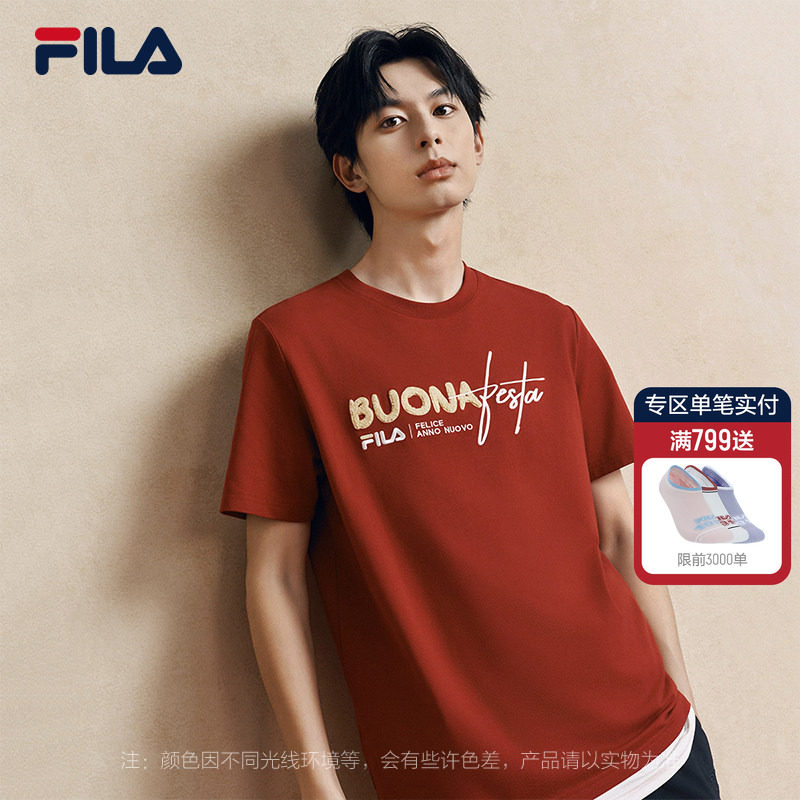 FILA马上起飞斐乐情侣短袖上衣男2026春新年款红色内搭刺绣T恤女