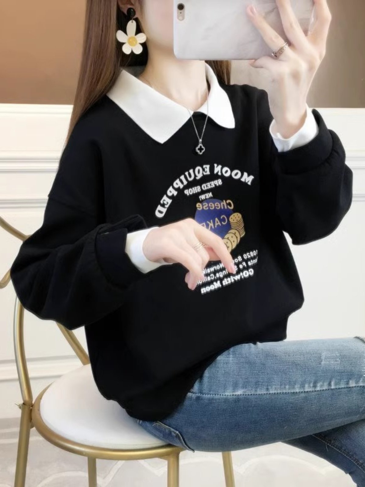韩版宽松卫衣少女春秋装初高中学生长袖POLO领T恤大童休闲上衣服