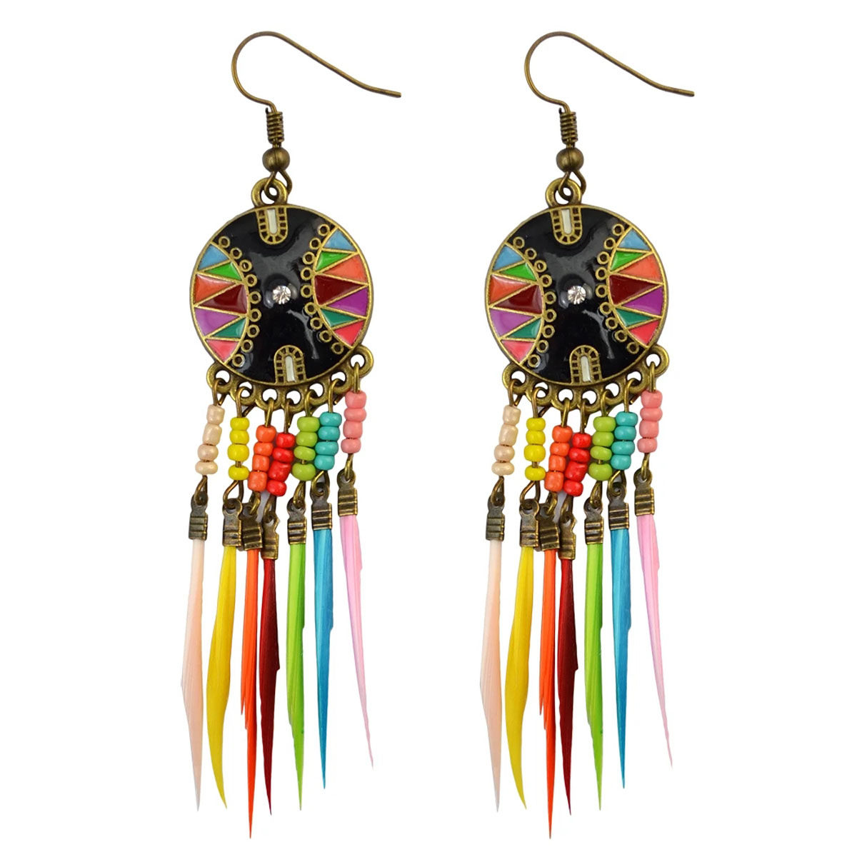 新疆复古民族风耳环彩色羽毛流苏耳坠法式时尚高级感小众星星耳钉