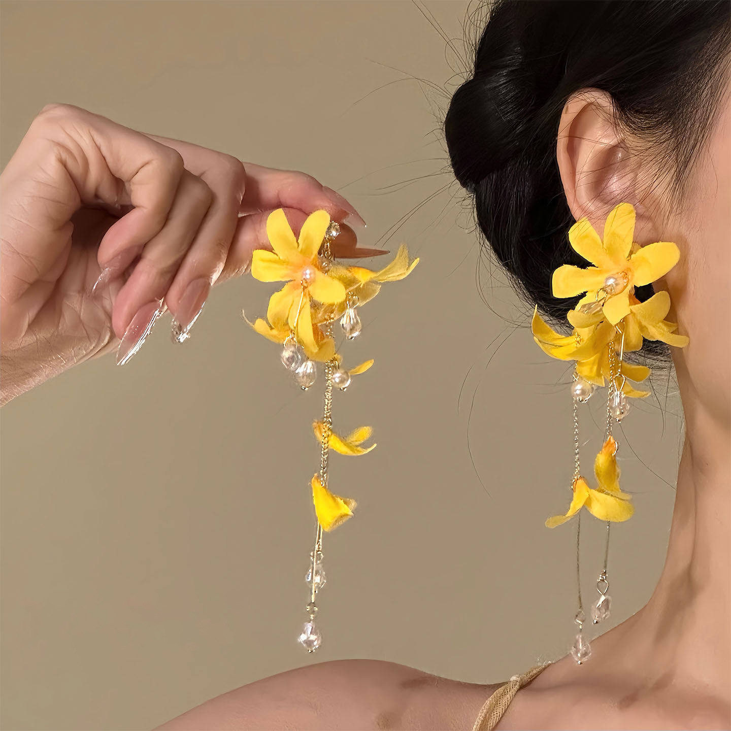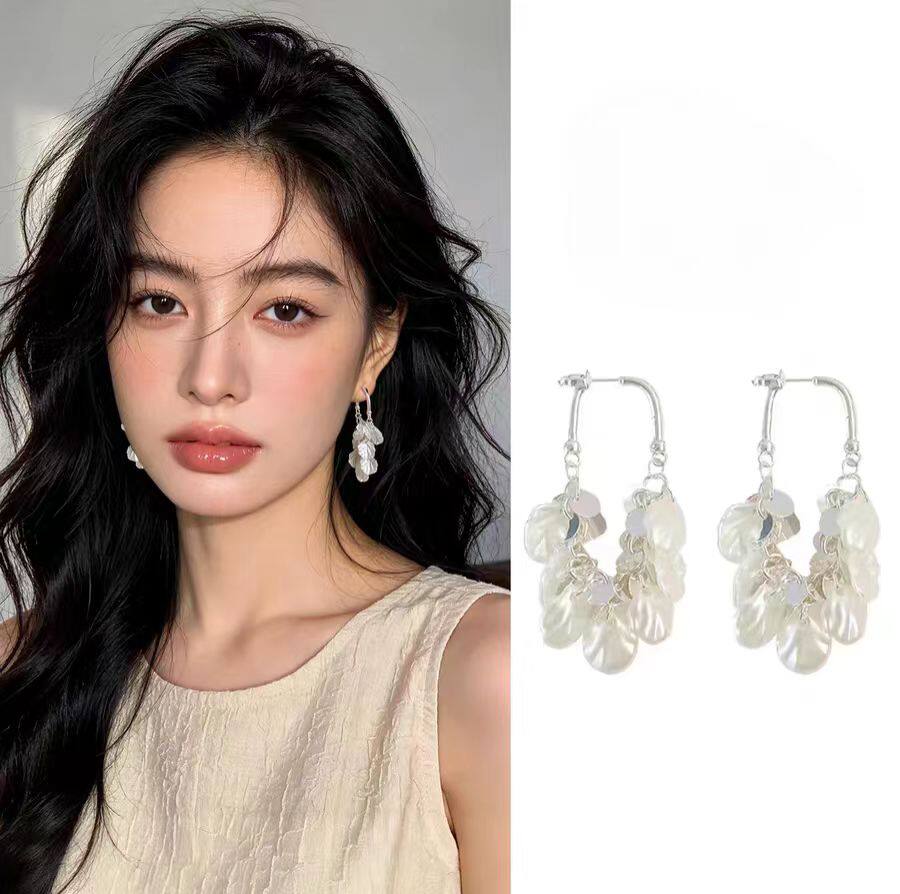 法式夸张长款前后戴贝壳花朵流苏耳钉女高级感精致简约独特耳环饰
