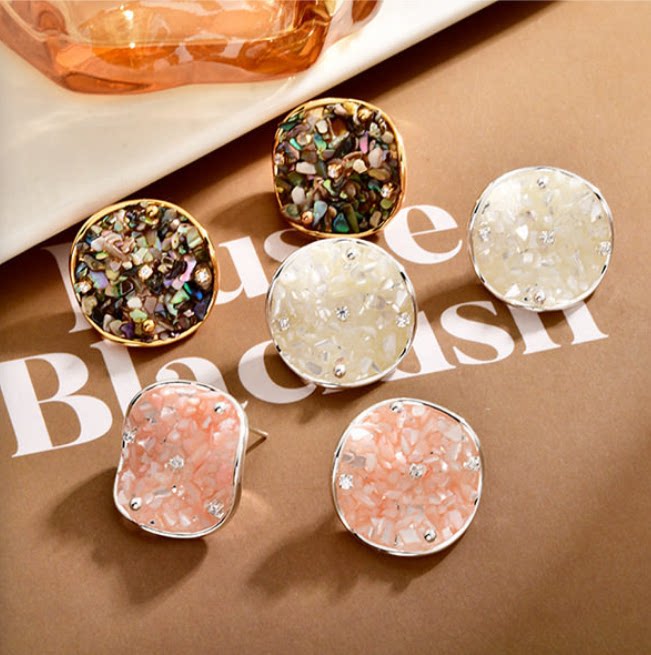 新中式国风复古褶皱圆形鲍鱼贝女耳钉轻奢高级感独特简约耳环耳饰