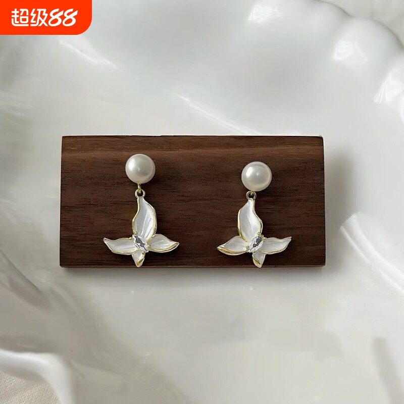 法式复古珍珠蝴蝶白色耳钉2026年新款爆款女方耳饰女人味气质耳环