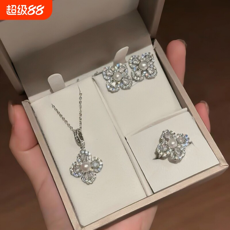 诸暨淡水珍珠吊坠耳钉戒指三件套日常通勤百搭气质女人高级感礼物