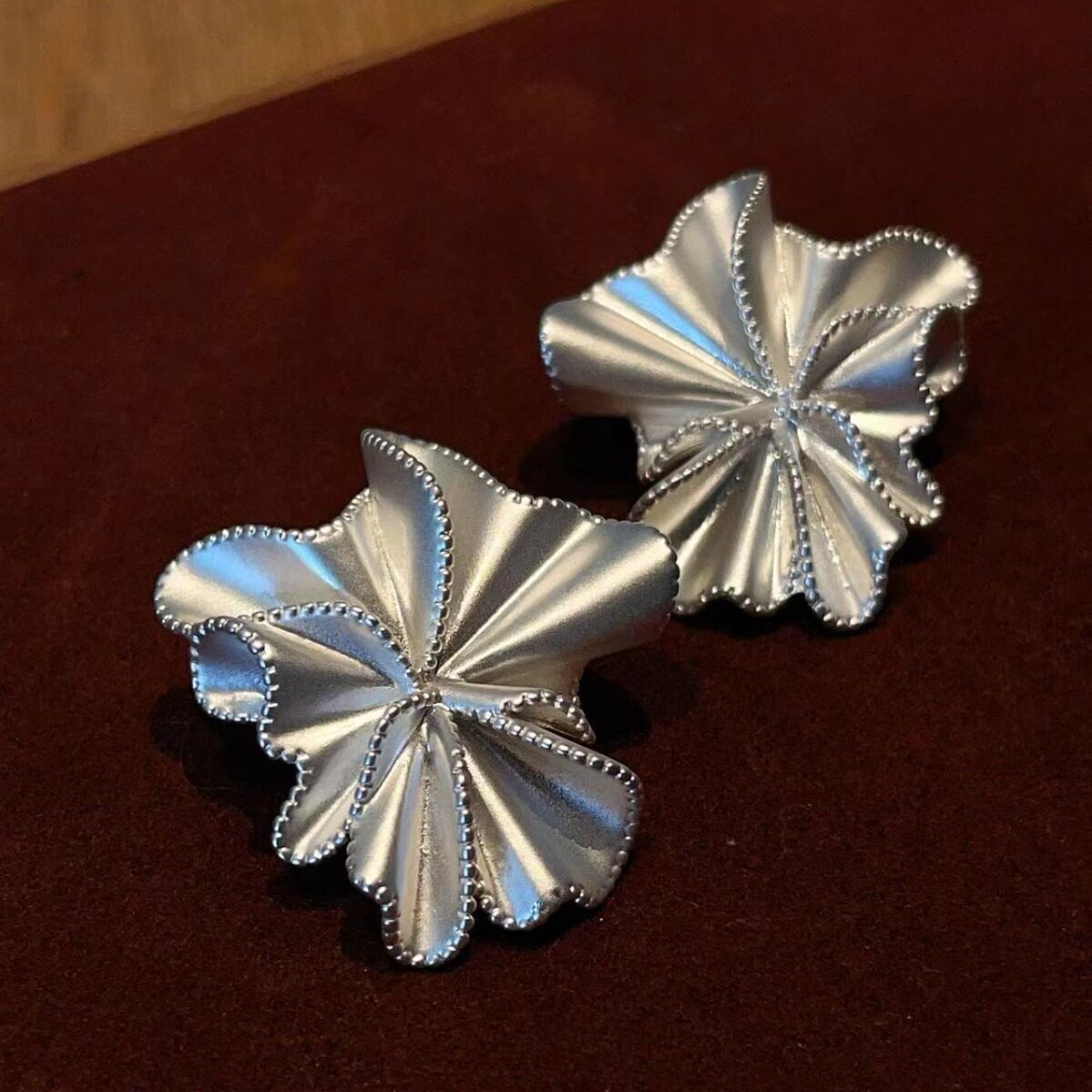 欧美法式港风独特皱褶荷叶名媛耳环高端个性简约气质耳钉时尚耳饰
