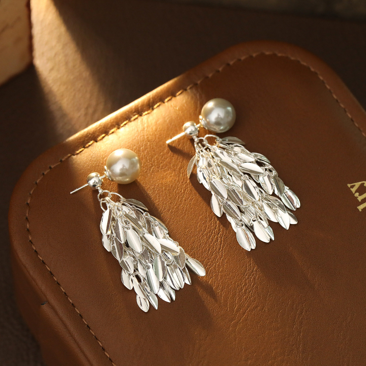 耳钉2025新款爆款高级感S999纯银针珍珠流苏简约女人味气质耳饰