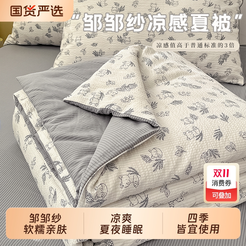 A类全棉夏凉被子被芯大豆纤维空调被褥单人可水洗纯棉夏被四件套