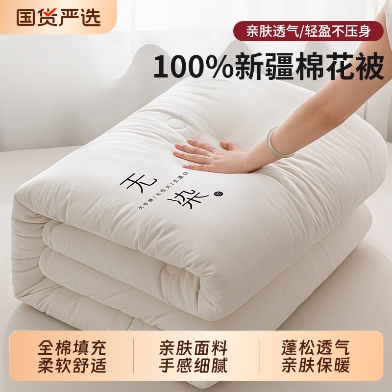南极人纯棉全棉冬被新疆棉花加厚保暖棉被可机洗被子被芯四季通用