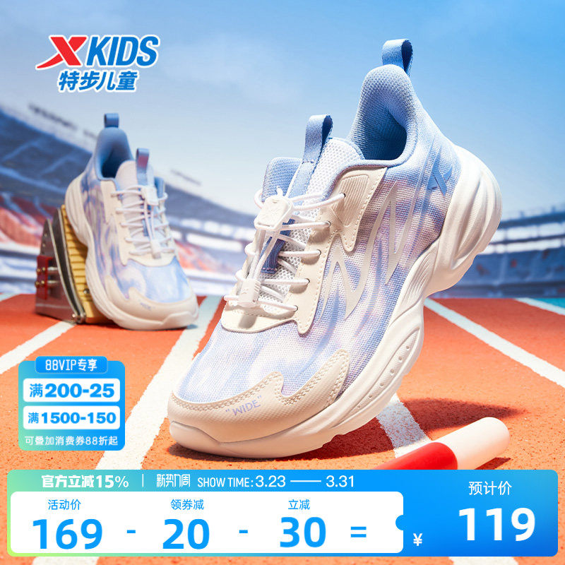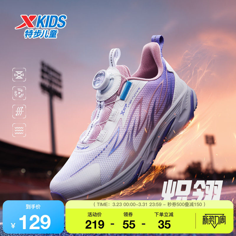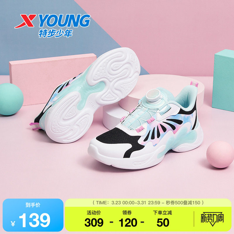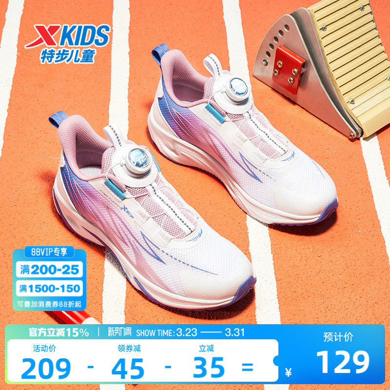 特步童鞋秋季新款大童旋钮扣缓震跑鞋儿童软底防滑鞋子女童运动鞋