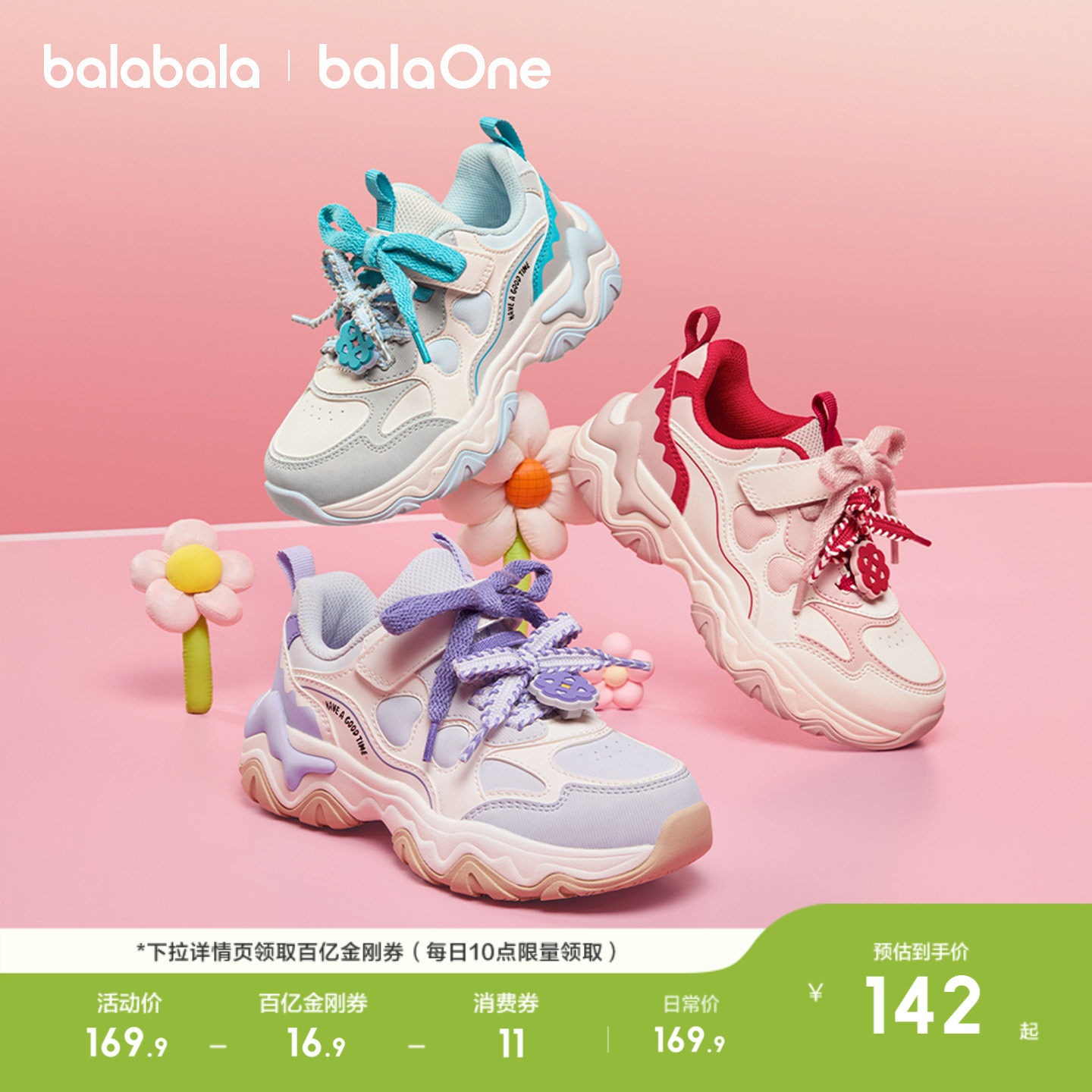 巴拉巴拉童鞋儿童运动鞋女童跑步鞋子春秋季2026新款防滑休闲甜美
