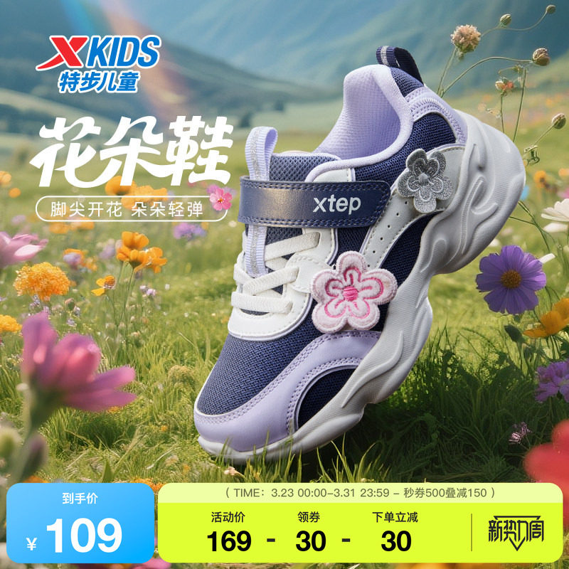 特步童鞋女童运动鞋春秋季新款儿童休闲鞋网面透气中大童跑步鞋子