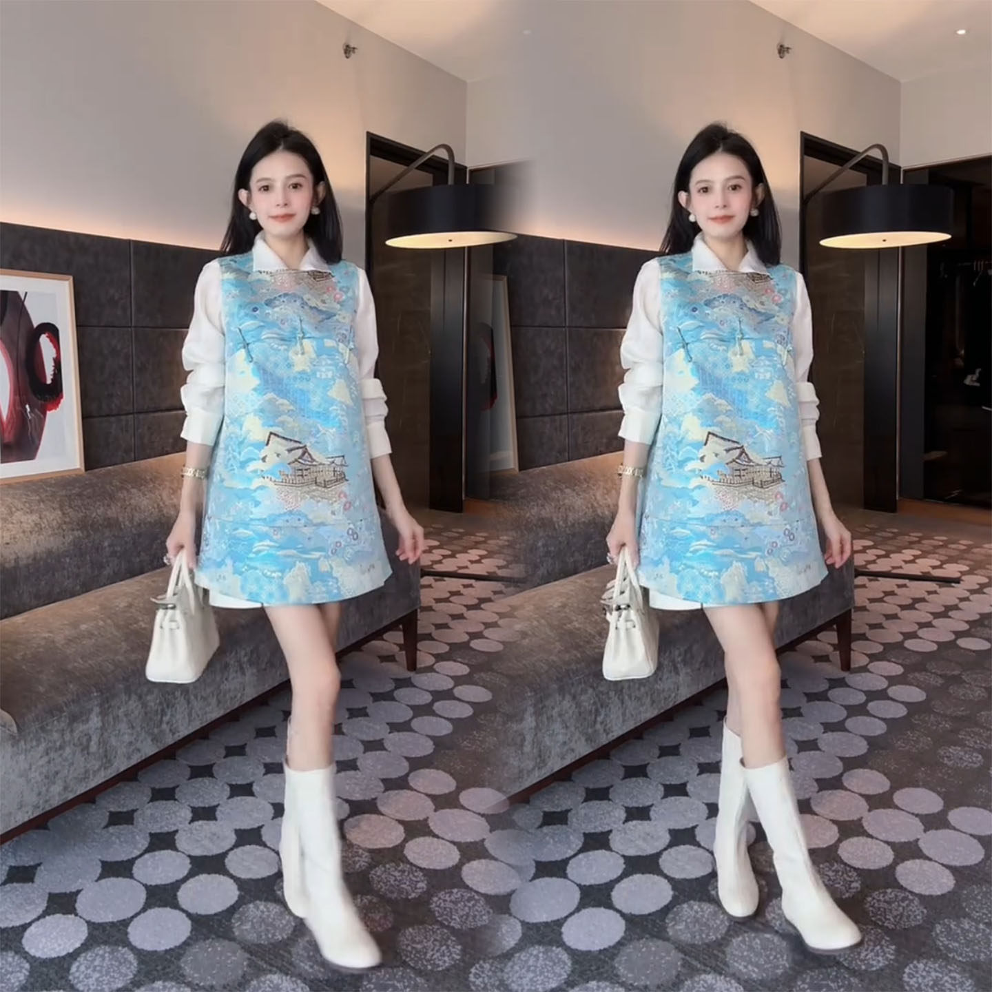 新中式国潮风轻奢复古套装女2025秋冬季新款衬衫连衣裙气质两件套