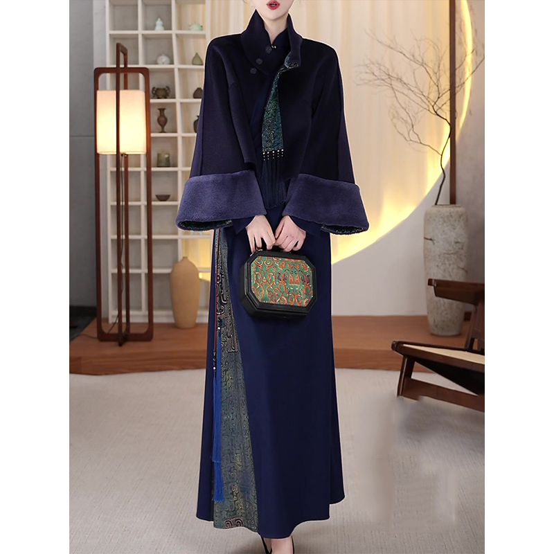 新中式文艺复古套装女2026秋冬新款宽松显瘦减龄改良外套+连衣裙