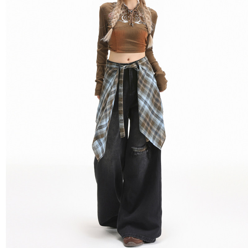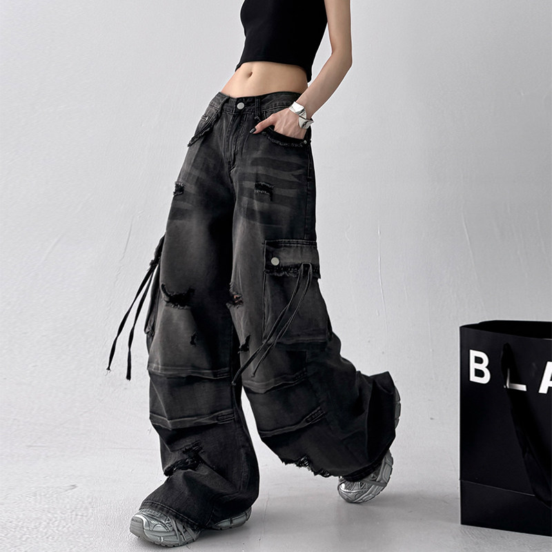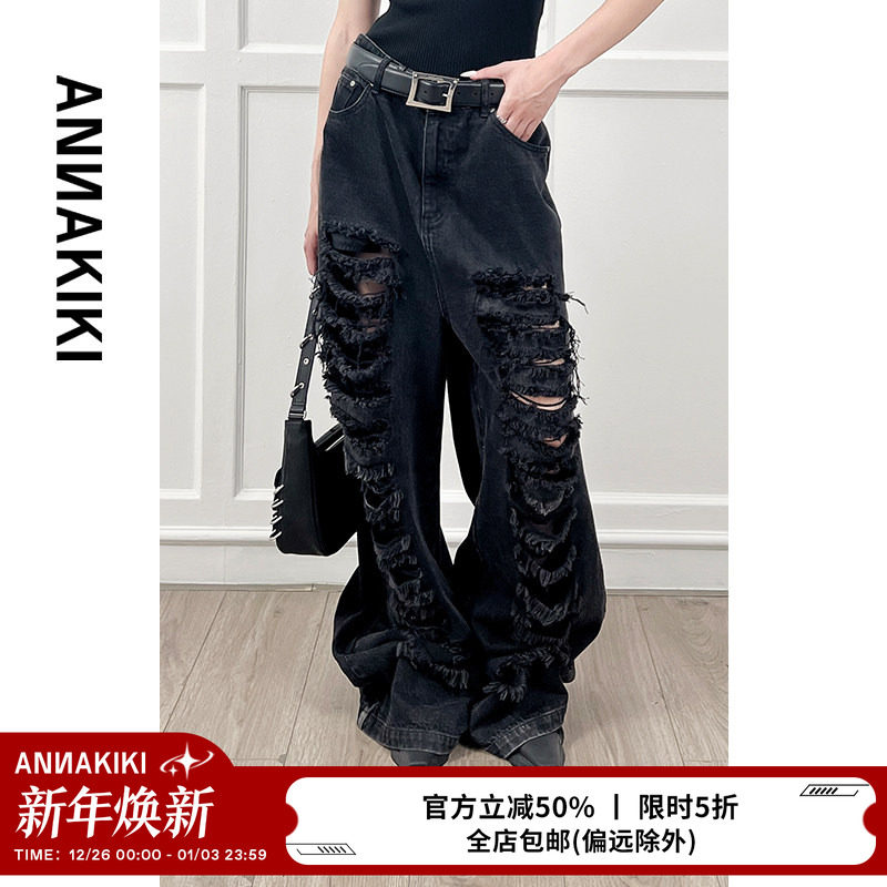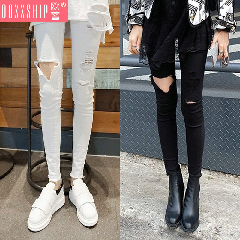 - 破洞牛仔裤女小脚裤显瘦长裤