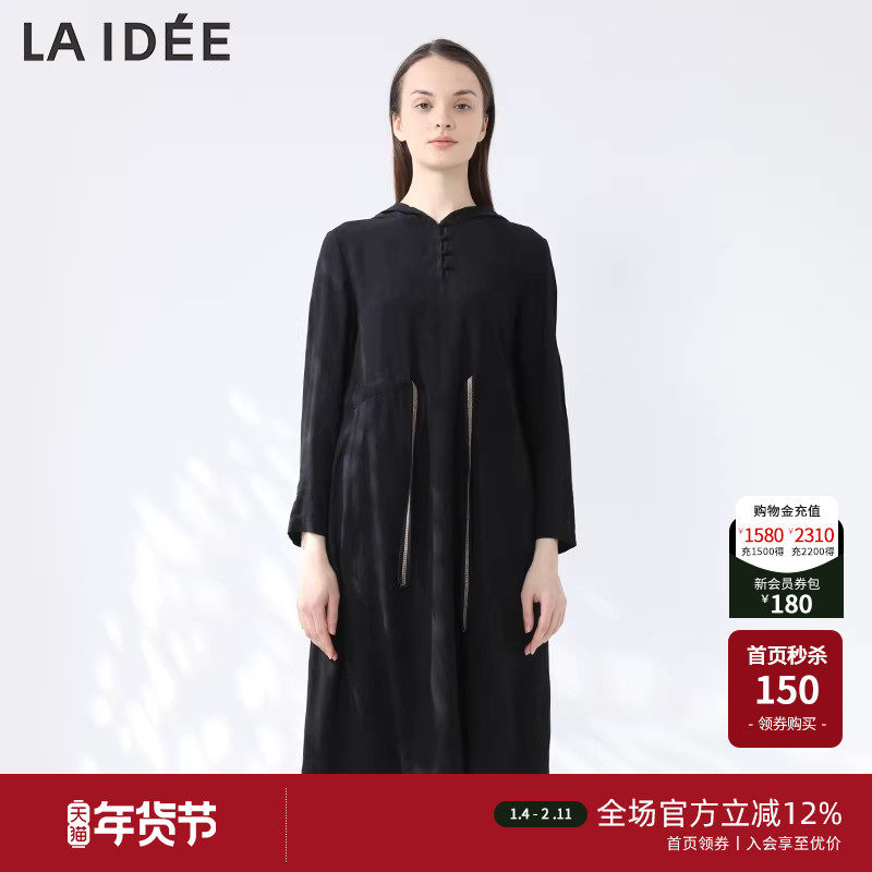 LAIDEE/罗兰伊杜连衣裙中长黑色宽松优雅气质裙子文艺连衣裙女春