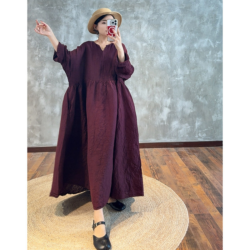 【自然灵感】AUM噢姆2025年秋季新款圆领系带文艺连衣裙宽松长裙