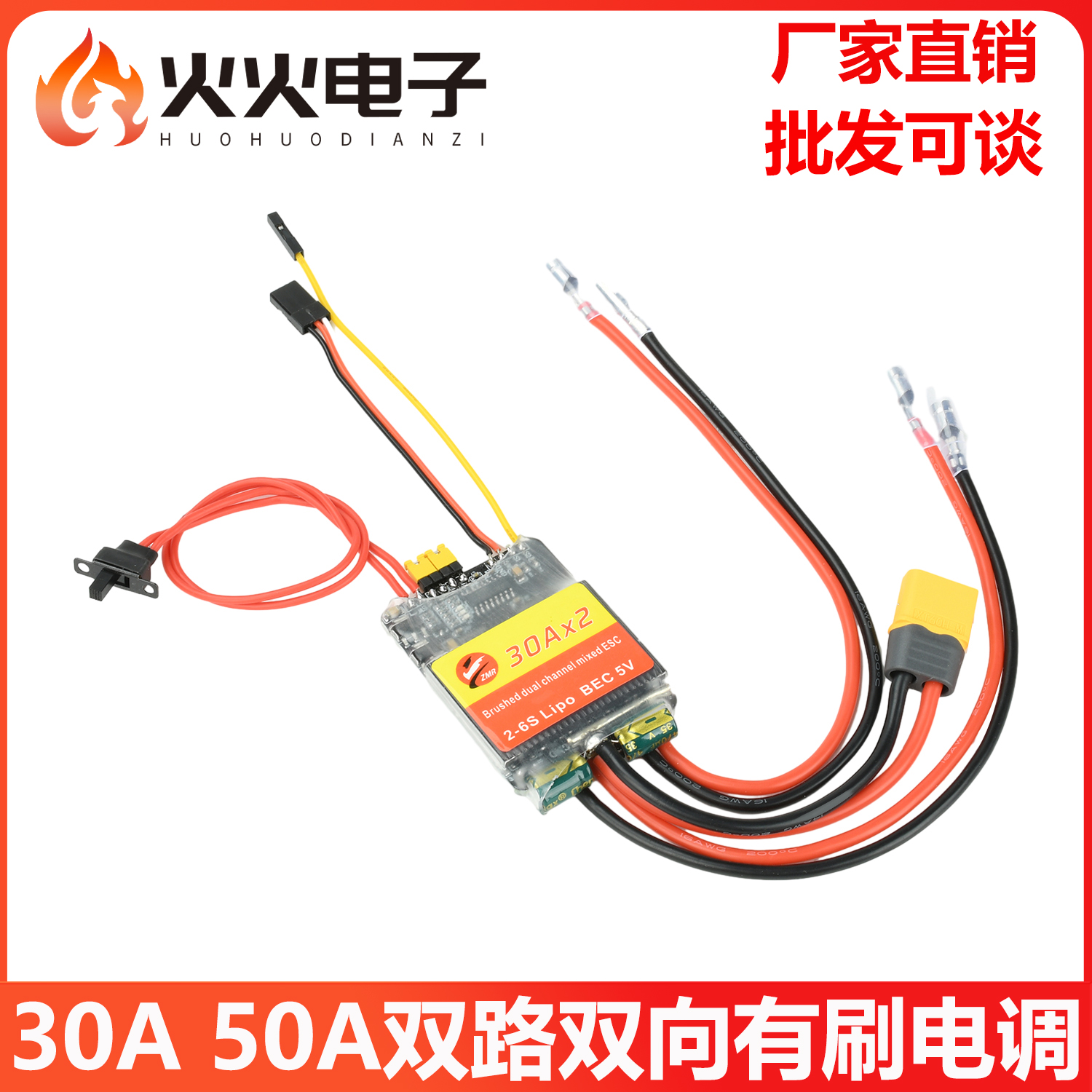 30A/50A双路双向有刷电调驱动器PWM信号适用于遥控车遥控船履带车