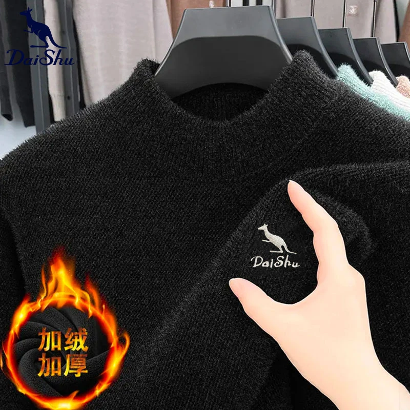 罗蒙冬季中老年假两件毛衣男翻领打底衫套头加绒加厚保暖男士卫衣