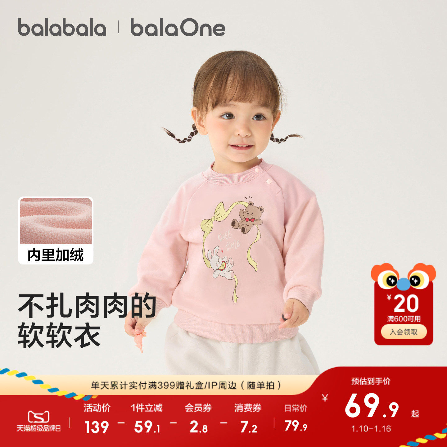 巴拉巴拉童装宝宝卫衣长袖婴儿打底衫加绒秋冬装套头休闲百搭上衣