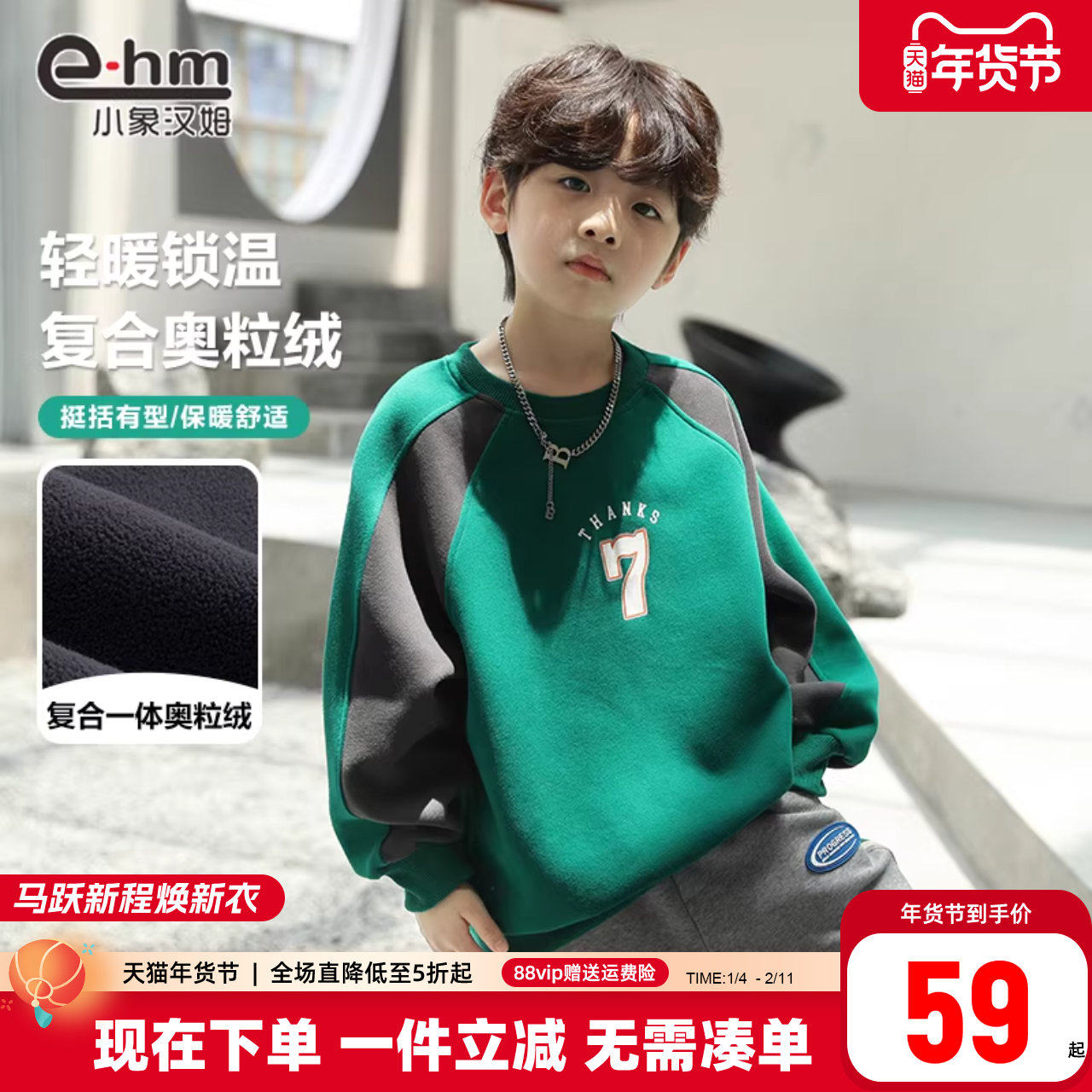 小象汉姆童装男童加绒卫衣儿童冬套头打底衫2025冬装新品大童韩版