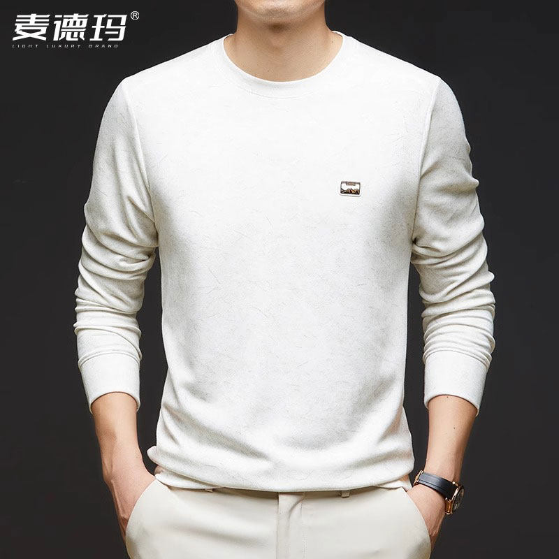 高端春秋长袖t恤男圆领新款高端休闲男士卫衣套头打底衫宽松上衣