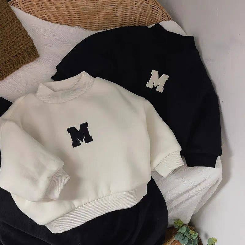 韩版婴幼儿加绒加厚卫衣套头打底衫宝宝上衣宽松儿童时尚百搭外套