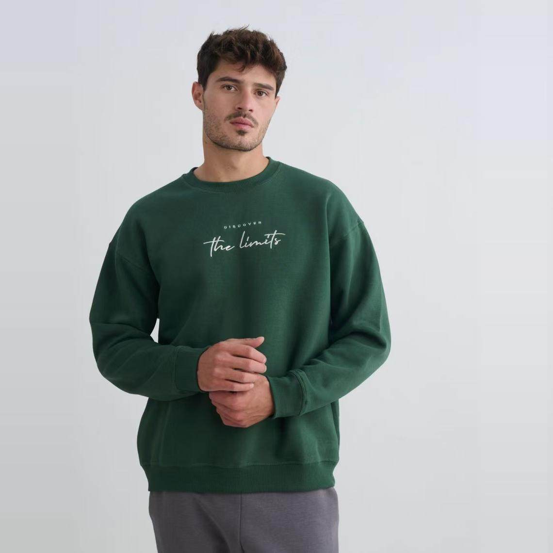 男女同款!墨绿色系!刺绣圆领加绒宽松时尚春秋冬卫衣套头打底衫