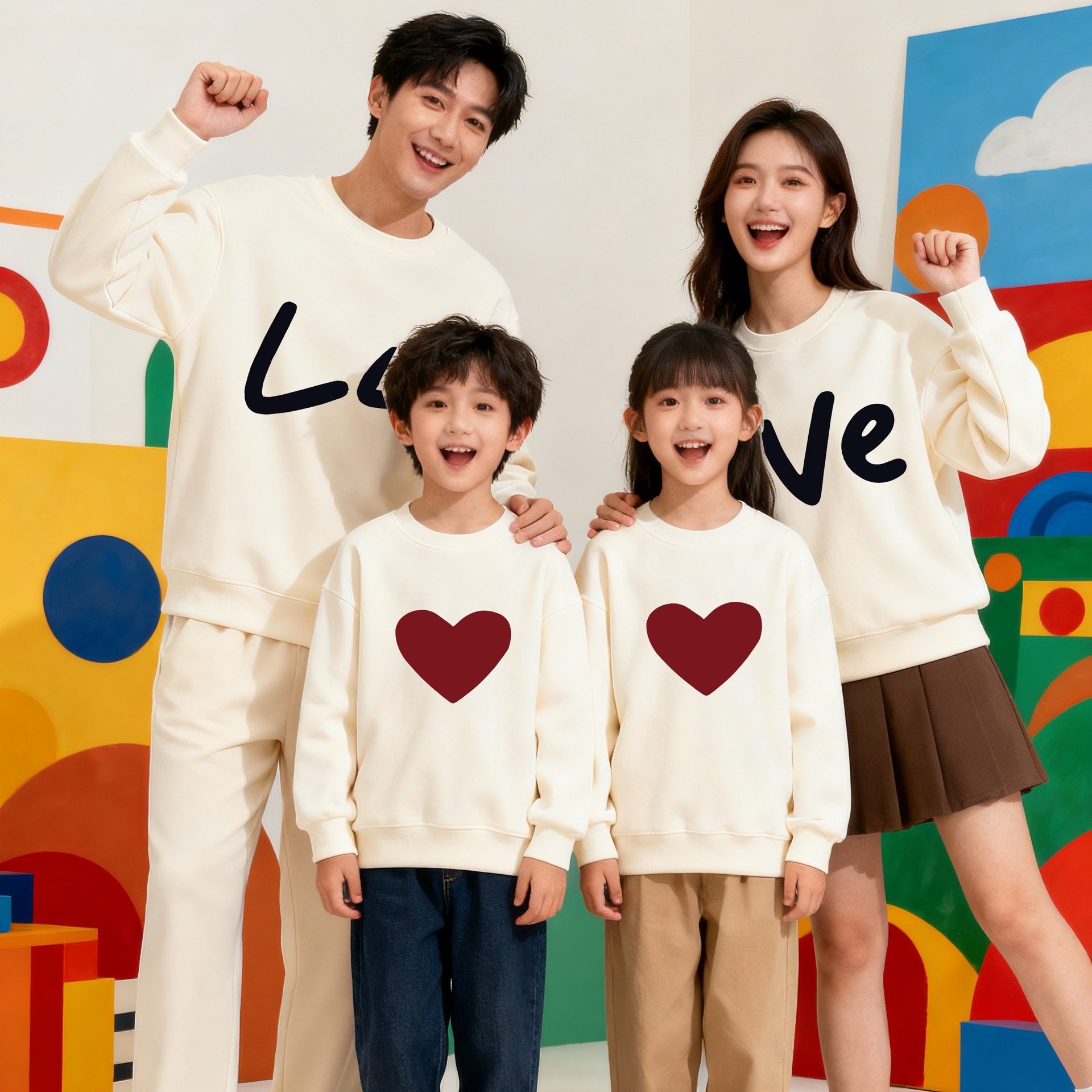 特别的亲子装LOVE有爱的一家三口四口秋冬卫衣套头打底衫长袖上衣