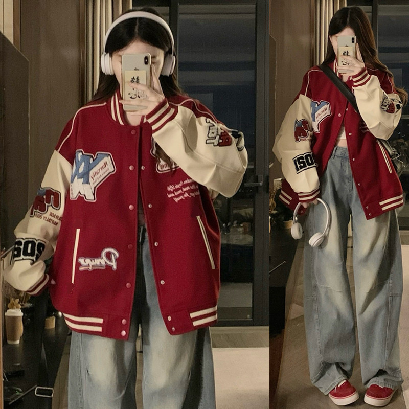 - 原宿风棒球服女bf 宽松