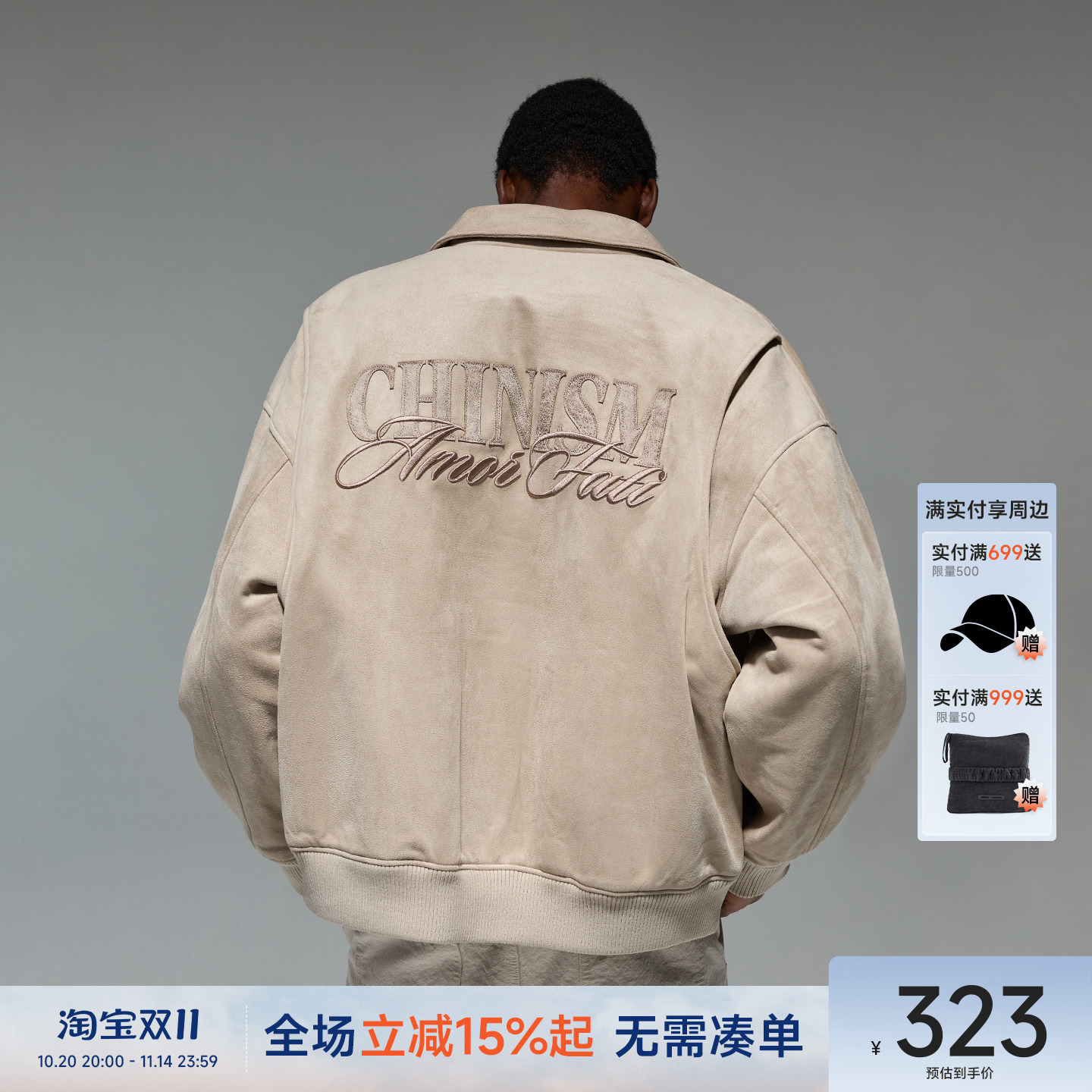 CH麂皮休闲夹克男秋季新款美式刺绣加厚棒球服男生复古翻领外套