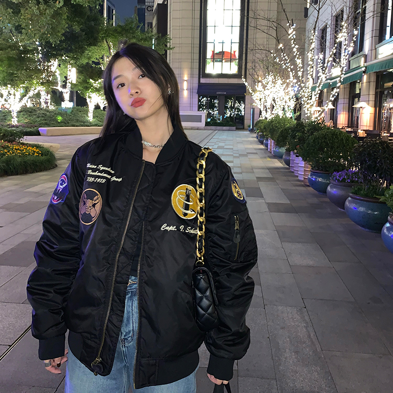 美式复古飞行员夹克春秋冬季棉衣男女刺绣棒球服加厚外套潮牌棉服