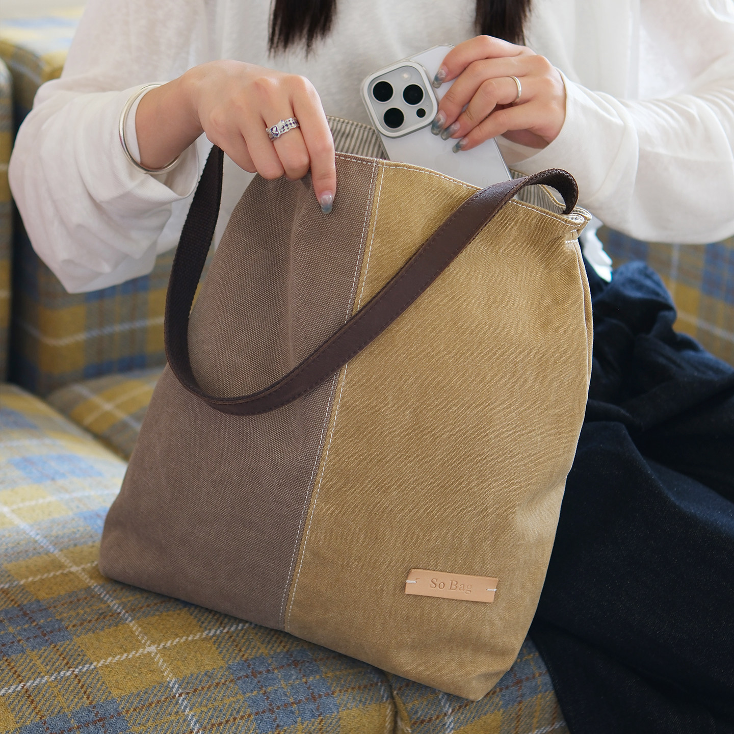 sobag日系复古文艺通勤斜挎单肩帆布包女小众设计感大容量托特包