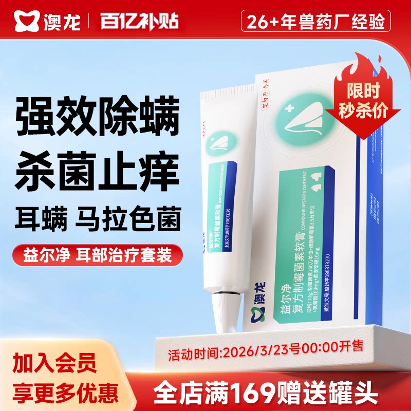 澳龙益尔净狗猫通用除耳螨马拉色菌消炎宠物洗耳液软膏耳药益耳净