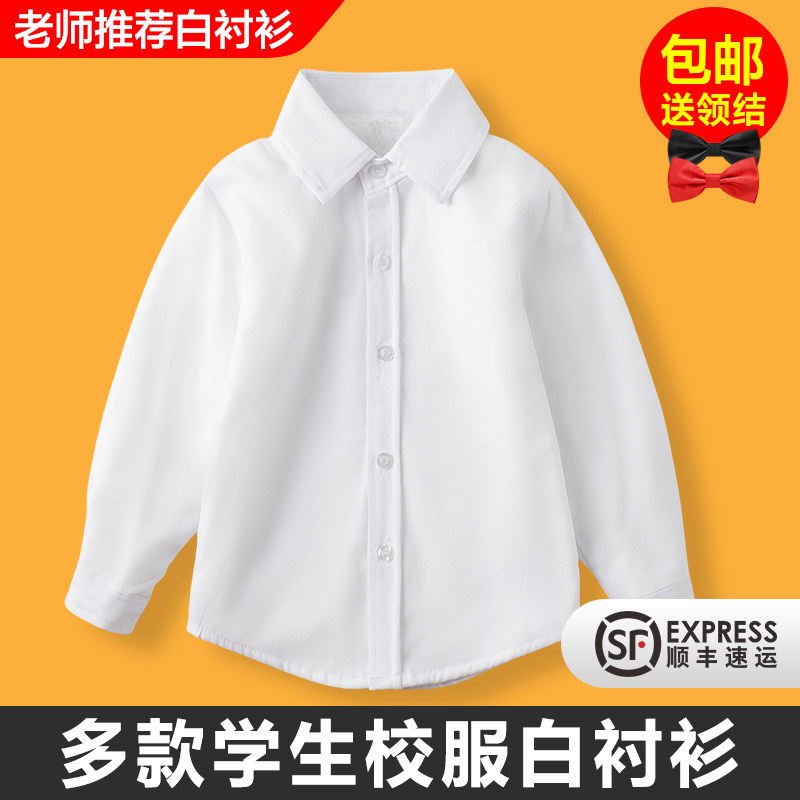 儿童白衬衫男童长袖纯棉春秋小学生校服中大女童白色衬衣表演出服