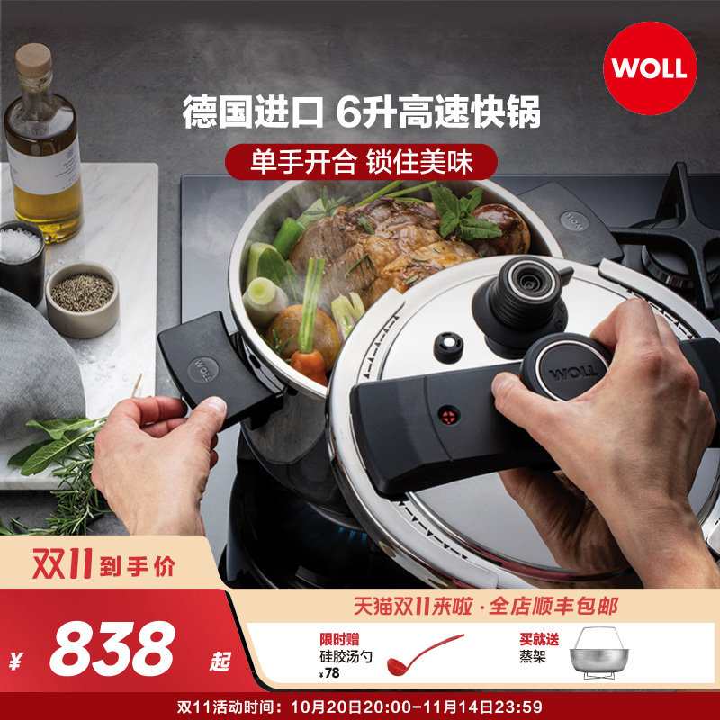 WOLL德国进口不锈钢压力锅6升燃气家用防爆高压锅电磁炉通用