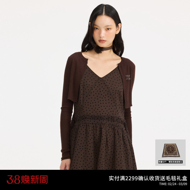 织物猪 都市甜心 千金风波点连衣裙miu系穿搭斗篷两件套气质长裙
