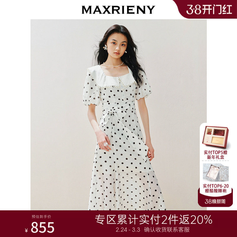 【2件8折】【商场同款】MAXRIENY波点连衣裙方领鱼尾名媛茶歇裙