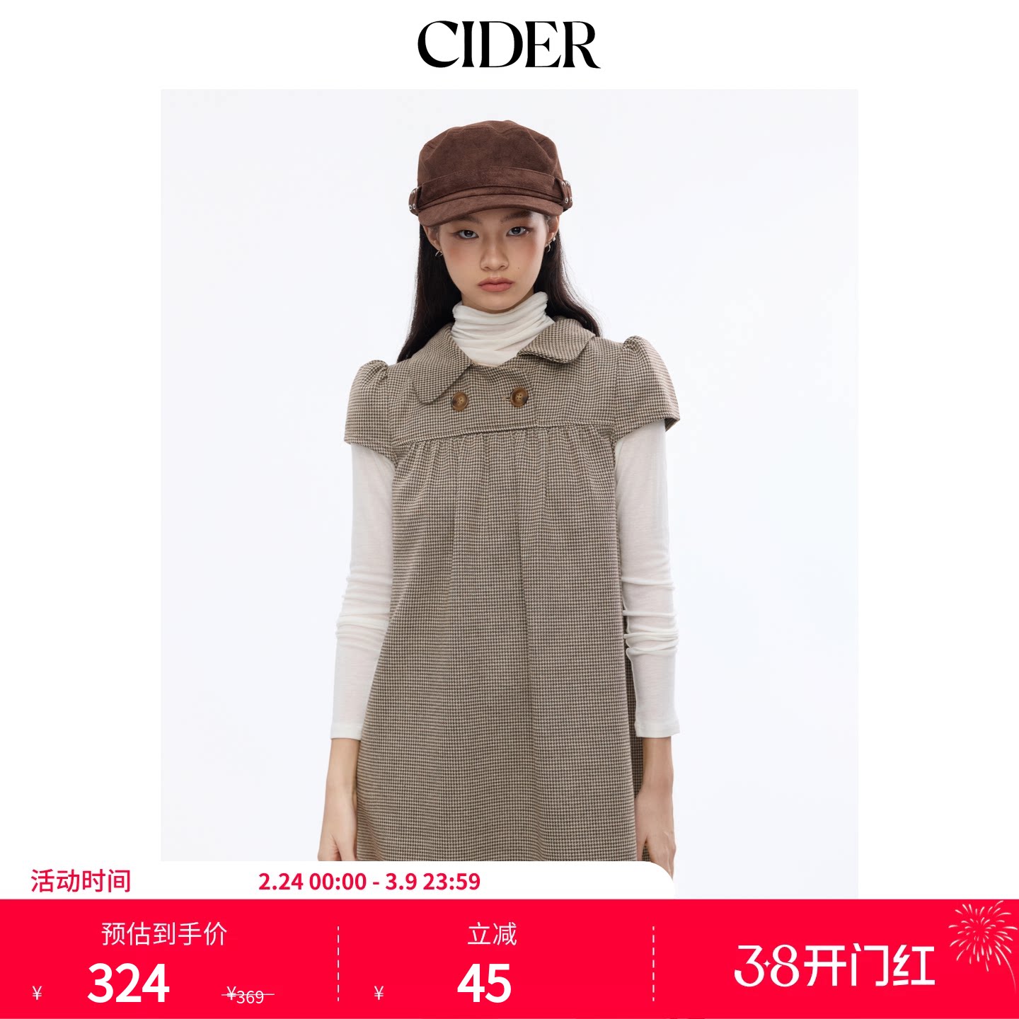 CIDER彼得潘娃娃领美式复古格子短袖针织波点连衣裙114967589