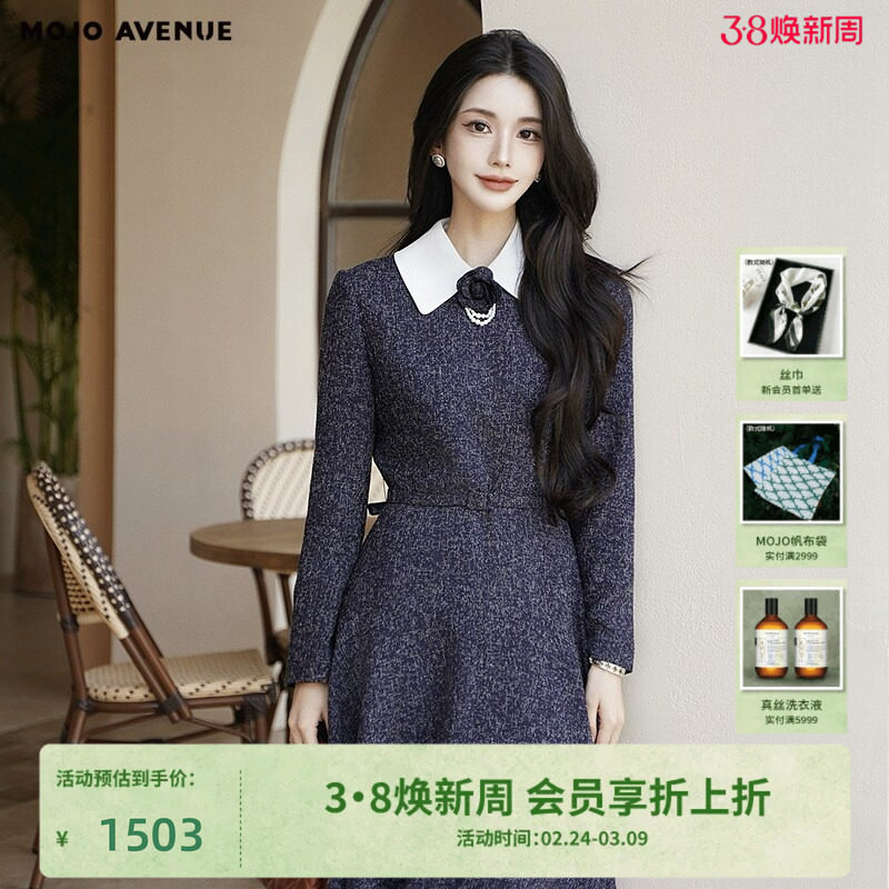 朗姿/MOJO AVENUE莫佐香风波点连衣裙女复古学院风优雅收腰A