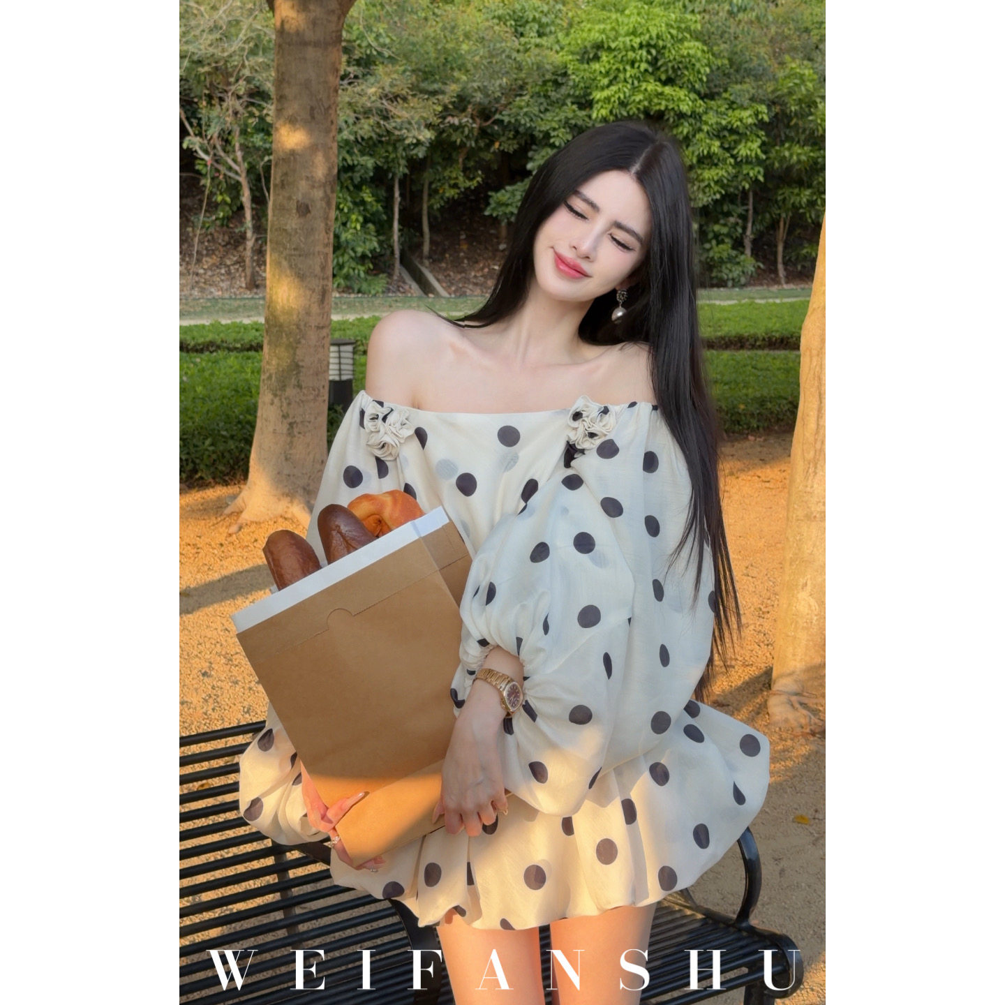 凡舒轻奢 古堡玛丽2026年春夏新款一字肩甜美公主波点连衣裙减龄