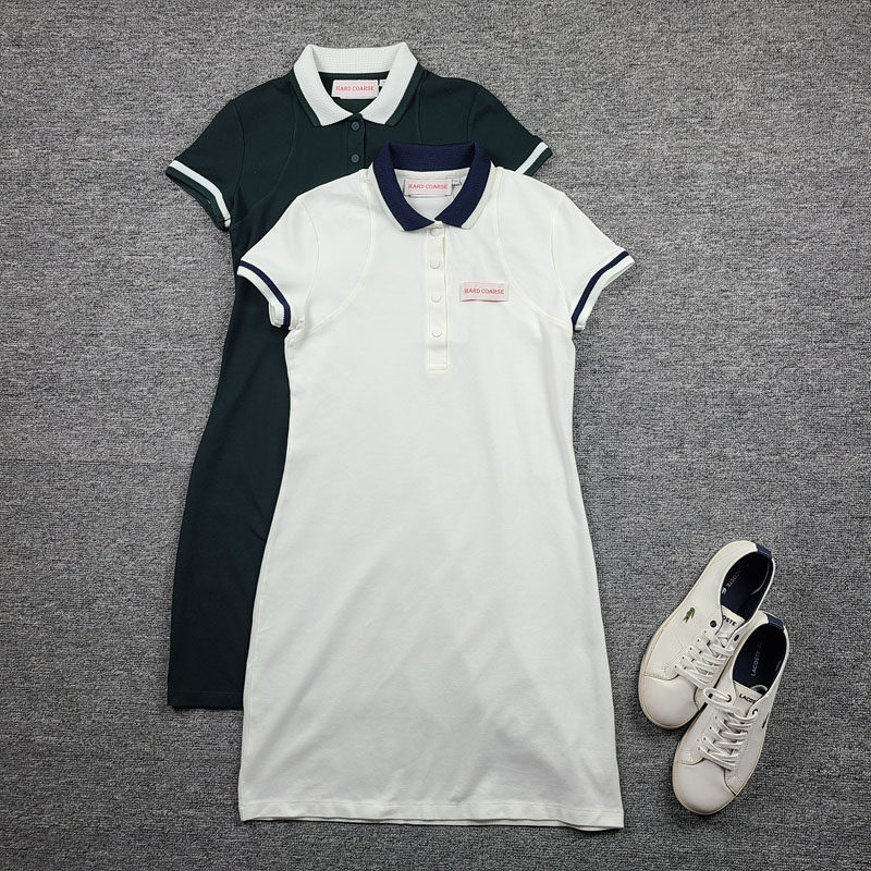 4609鱼 法产 超酷剪裁拼接四粒扣polo连衣裙 夏季短袖优雅短裙