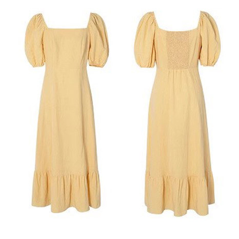 连衣裙 夏季女装新款方领泡泡袖轻熟小众气质修身显瘦潮中长裙子