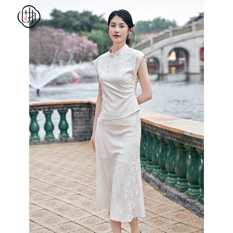 LYNEE【迷迭花园】白色压褶A字半裙 夏季氛围感纱裙时髦通勤中裙