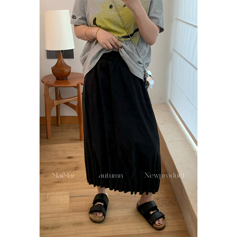 加长百褶裙女夏季黑色短裙2026新款高腰显瘦高个子春季a字半身裙