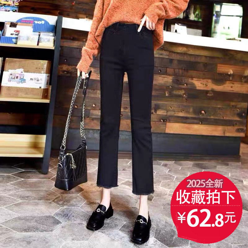 黑色高腰九分微喇牛仔裤女2026春季修身显瘦百搭小个子毛边小喇叭