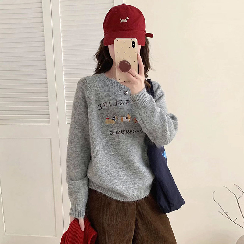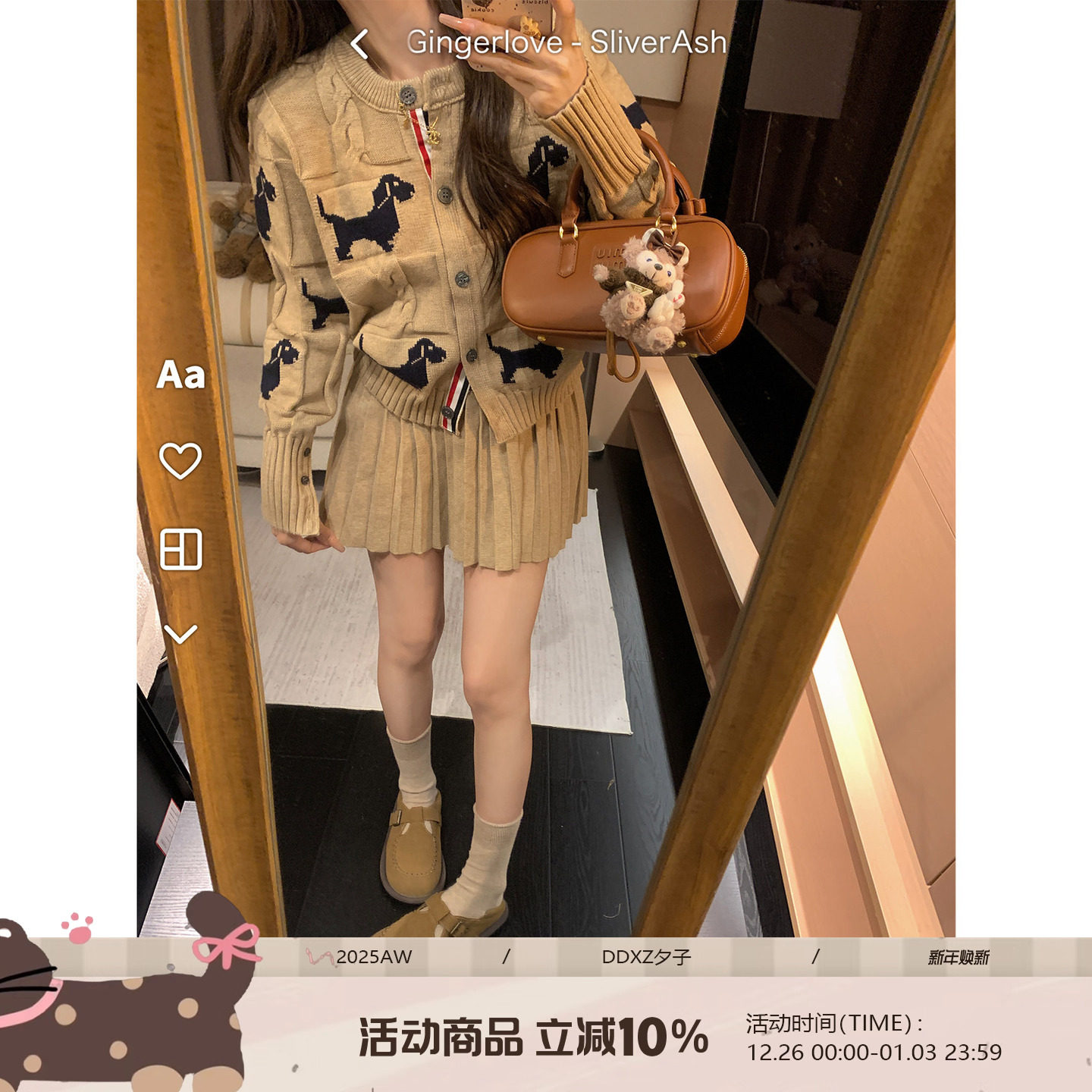 DDXZ夕子刺绣毛衣外套韩系减龄小众设计感独特可爱小狗针织开衫女