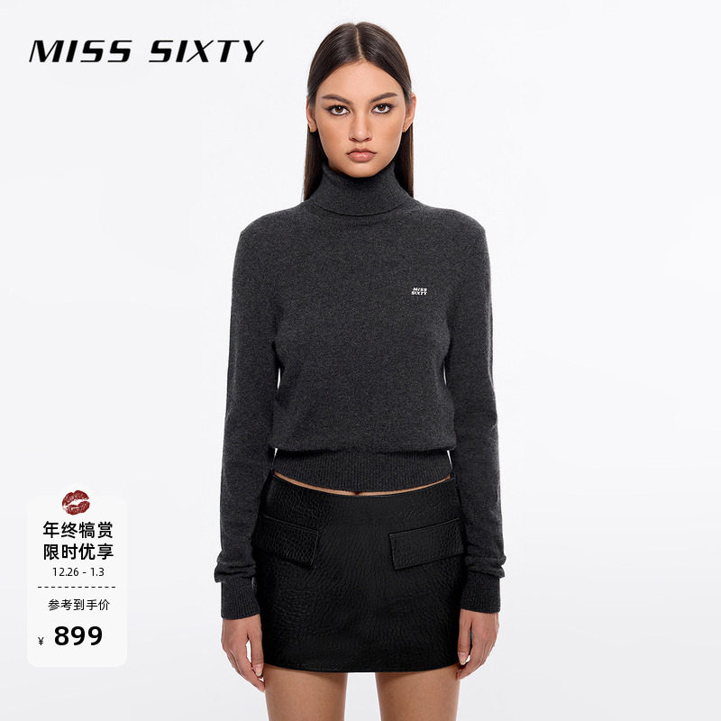 【保暖山羊绒】Miss Sixty山羊绒针织衫上衣高领刺绣毛衣简约