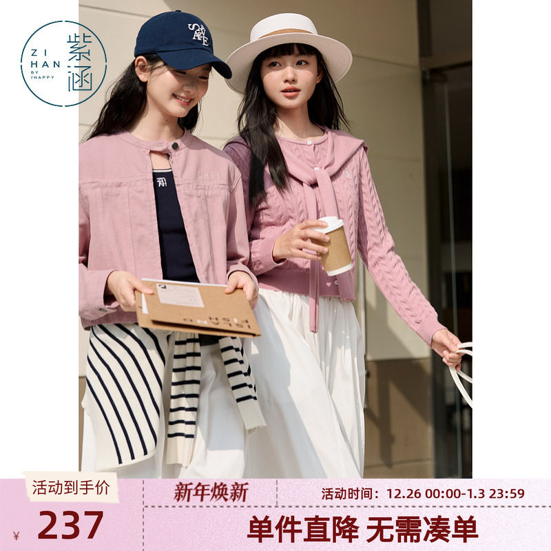 紫涵麻花圆领针织开衫女春秋季新款甜美修身显瘦内搭休闲刺绣毛衣