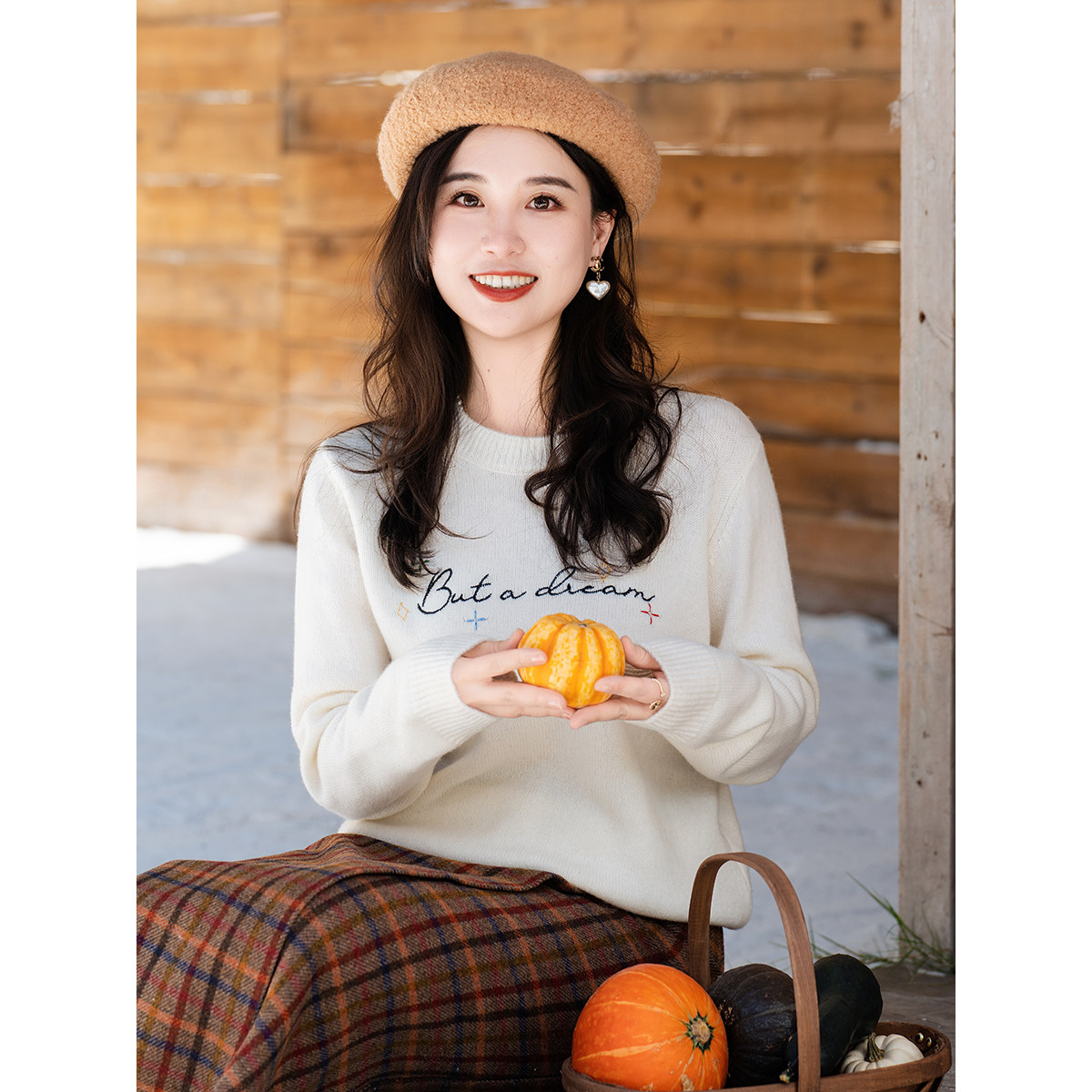 apipedream如一梦 圆领字母刺绣毛衣套头绵羊毛针织衫/白日星梦